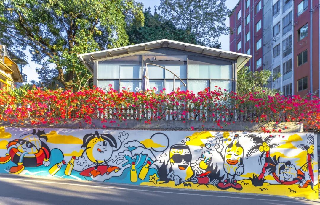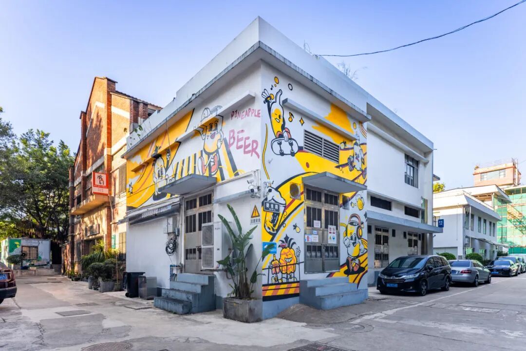 墙角随处可见的菠萝啤主题装饰